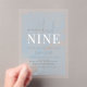 This elegant and modern "the bride is on cloud nine/9" bridal shower acrylic/clear invitation features a blue sky with white clouds in watercolor. Personalise for your needs. You can find more matching products at my store.