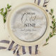 Elegant watercolor beige calligraphy Baby Shower Paper Plates with title "We are On cloud nine".