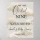 Elegant watercolor beige calligraphy Baby Shower Welcome Sign with title "We are On cloud nine".