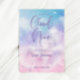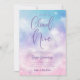 Dreamy baby shower invitation card featuring watercolor art of pink and purple sky with clouds and stars. The text says "We are on cloud nine." Perfect for a girl's baby shower.
