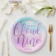 Cloud nine baby shower paper plates. We are on cloud nine plate template for you to personalise for the perfect event. Purple pink party plate for cloud and sky themed baby shower.