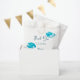 Dreamy and boho cloud nine theme baby shower favour bag featuring watercolor illustration of turquoise blue clouds.