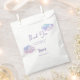 Dreamy and boho cloud nine theme baby shower favour bag featuring watercolor illustration of pink and purple clouds.