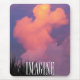 This inspirational Mouse Pad is an original photograph by ZoeSPEAK of clouds in the eastern sky reflecting the sunset in the west, over the Gulf of Mexico. The tropical evening sky is bathed in a warm pink glow above the dark silhouette of palm trees. Filling most of the photo is a cloud in a very interesting shape, looking almost like a fluffy toy animal or...use your imagination...the soft pink colors of the sheer clouds near the bottom of the photo intensify as the sun hits the thick, billowing shape of the main cloud rising into the sky. The puffy shape at the top of the cloud has yellow highlights. Near the bottom of the mousepad is the word IMAGINE, in tall thin white capital letters.