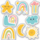 Rainbows, star, cloud, rainbow snail, moon, sun and cloud.
