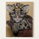 This image shows a clouded leopard cub being held with a pair of gloves. While more closely related to big cats, the clouded leopard is frequently described as bridging the gap between big and small cats due largely to its smaller stature. It has proportionately short legs and a long tail. The coat is brown or yellowish-grey and covered with irregular dark stripes, spots and blotches. | "Smithsonian" and the Smithsonian logo are registered trademarks owned by Smithsonian Institution.