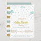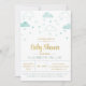 Clouds and Hearts Blue and Gold Baby Shower Invitation