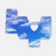 Fluffy white clouds in a bright blue sky design.