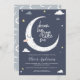 Dream big little one clouds, moon & star birthday party invitation. Beautiful illustration and script text. Part of a collection
