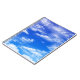 Fluffy white clouds in a bright blue sky design.