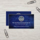 Card features a cloudy blue water grunge cover with a faux silver "water wave life buoy" logo at the top. This is followed by the business name and a slogan to publicise your services. Change the caption remarks to the slogan to suit your own needs. Near the base is the contact details.