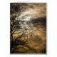 A winter tree is silhouetted against a cloudy sunset creating a mystical scene.