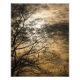 A winter tree is silhouetted against a cloudy sunset creating a mystical scene.