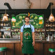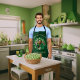 Clover & Beer Companionship Apron: This artwork “Clover and Beer Companionship” depicts a cheerful, red-bearded Irish man wearing a leprechaun-style hat while enjoying a glass of green beer on St. Patrick's Day. The image captures this popular Irish celebration's festive spirit and camaraderie.