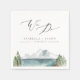This wedding napkin features a bohemian watercolor mountain lake painting and elegant calligraphy font. This is the perfect napkin for any season.