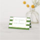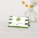 Irish clover or shamrock and a striped pattern made of green and white stripes are the focus of this modern St Patrick's Day wedding folded place escort card.