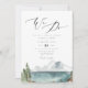 This wedding invitation features a bohemian watercolor mountain lake painting and elegant calligraphy font. This is the perfect invitation for any season.