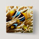 Underwater photo of cute clown fish with orange, black and white stripes, taken while scuba diving in Egypt.
