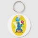 A clown standing on its head with some balloons around it. This design looks really effective on this Keychain