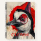This school notebook has a very cool design with a penguin illustration that has a clown's make-up. You can customise the text.