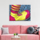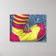 A beautiful photograph of a yellow and red clown shoe and matching sock printed on a canvas.