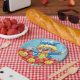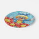 A funny happy clown amongst yellow flowers with faces. This design looks really effective on these Paper Plates
