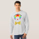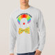 This long-sleeve graphic tee features a "faceless" clown illustration with rainbow wig, red clown nose and yellow polka dot bow tie. This t-shirt is ready to be customised with your own message above the graphic in bold black lettering.