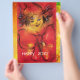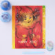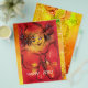 Colourful ,whimsical ,vibrant,artistic clown portrait with a fancy red ribbon,watercolor painting in red,yellow,brown colours inspired from Carnival of Venice.Elegant design, easy to customise with your initials and your own text.
