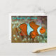 A postcard featuring a cute ocellaris clownfish nestled in the anemone it calls home. The photo was taken at Steve's Bommie on Australia's Great Barrier Reef.