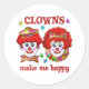 Let others know that clowns bring happiness to your life with this male clown and female clown and the words - Clowns make me happy.