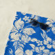 Ocean blue colorway. The North Shore Longboard Surfing Club, In the spirit of island traditions and aloha. Oahu, Hawaii. This distressed surf club badge is inspired by the surfing clubs of the sixties. It rides on top of a vintage hibiscus pareau print.