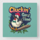 Cluckin' Good Time Funny Chicken Illustration Square Wall Clock