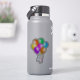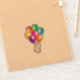 This vinyl sticker with a transparent backing is a cluster of bright festive balloons with matching hanging streamers in pretty colours of purple, yellow, blue, pink green, and orange.
