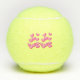 These tennis balls have a cluster of pretty vibrant hearts in various shades of pink on the front and back.