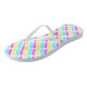 This vibrant pair of flip flops features a playful array of mustachios rendered in bold cyan, yellow, and magenta. The letterpress-style texture gives the graphic design a modern, tactile aesthetic perfect for artists, designers, or anyone who loves CMYK-inspired art. This high-quality footwear adds a fun pop of personality to your summer wardrobe, perfectly blending whimsical style with a clean, contemporary design for a standout, creative look at the beach or pool. [gem 260214]