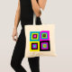 Modern, stylish CMYK monogram tote bag, showing geometric squares pattern in the colours of cyan, magenta, yellow and black (key). At the middle of each small square is a CUSTOMIZABLE MONOGRAM that you can replace with your initial. Ideal for CMYK enthusiasts, graphic designers and the colour creatives in your life.
