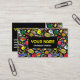 Customisable Business Cards for pickleball coaches. eclectic pickleball pattern with black background