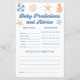 Add a fun touch to your coastal baby shower theme with this Personalised Coastal Baby Shower Baby Predictions and Advice card. Perfect for beach baby shower theme, ocean baby shower theme, or summer baby shower, guests can share their best wishes and guesses for the baby on board. A great keepsake and activity for summer baby shower themes, this card also fits perfectly with baby on board baby shower ideas and other summer baby shower ideas.