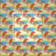 Summer fabric with beach chair and umbrella design. Muted, warm colour palette of beige, blue, yellow and orange-red in an ogee shape that repeats seamlessly. Use for sewing clothing, crafts, quilting and decorating. Select from a variety of materials.