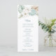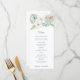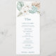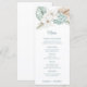 Showcase your beach reception menu with this beautiful coastal formal dinner menu. This design has a watercolor image of a winter floral arrangement with white poinsettias and tropical foliage. Colors used include, slate blue, forest green, ivory and tan.