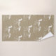 White sandpiper silhouettes over a dark taupe background. The hand towel has a striped pattern, while the wash towel has a framed sandpiper.