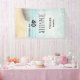 A birthday banner with a beautiful rustic image. Subtle colours of light blue, sandy brown and gentle white. A beach scene with a boat on the shore with a fishing net hanging off the side. An elegant shabby look.