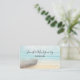 A business card with a beautiful rustic image. Subtle colours of light blue, sandy brown and gentle white. A beach scene with a boat on the shore with a fishing net hanging off the side. An elegant shabby look.