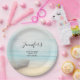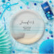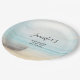 Baby shower paper plates with a beautiful rustic image. Subtle colours of light blue, sandy brown and gentle white. A beach scene with a boat on the shore with a fishing net hanging off the side. An elegant shabby look.