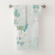 Coastal, beach or tropical Christmas holiday towel set to decorate your bathroom or guest bath. The design features SEAS AND GREETINGS in modern calligraphy script typography in turquoise, aqua and teal watercolor with coral, starfish and sand dollars accented with faux glitter. ASSISTANCE: For help with design modification or personalisation, colour change, transferring the design to another product or if you would like coordinating items, contact the designer BEFORE ORDERING via the Zazzle Chat MESSAGE tab below or email makeitaboutyoustore@gmail.com.