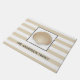 Coastal seashell with beige nautical stripes and your family name in dark grey.