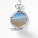 This silver pocket watch features a stunning coastal view of the beach at Soulac Sur Mer in France. Crystal clear calm waters and golden sands bring back memories of a wonderful vacation. You can replace my photo with one of your own if you prefer by clicking on the personalise button.
