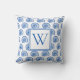 Coastal Blue and White Shells Monogram Cushion