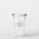 This cute coastal inspired acrylic tumbler features a blue and white stripe beach tote bag with hat. Personalise with your choice of name and special text in matching blue on the front and back.