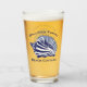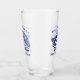 Blue and white conch seashell art decorates this coastal themed glass. A family name is above the shell with the text "Beach Cottage" below. Designed by world renowned artist Tim Coffey.